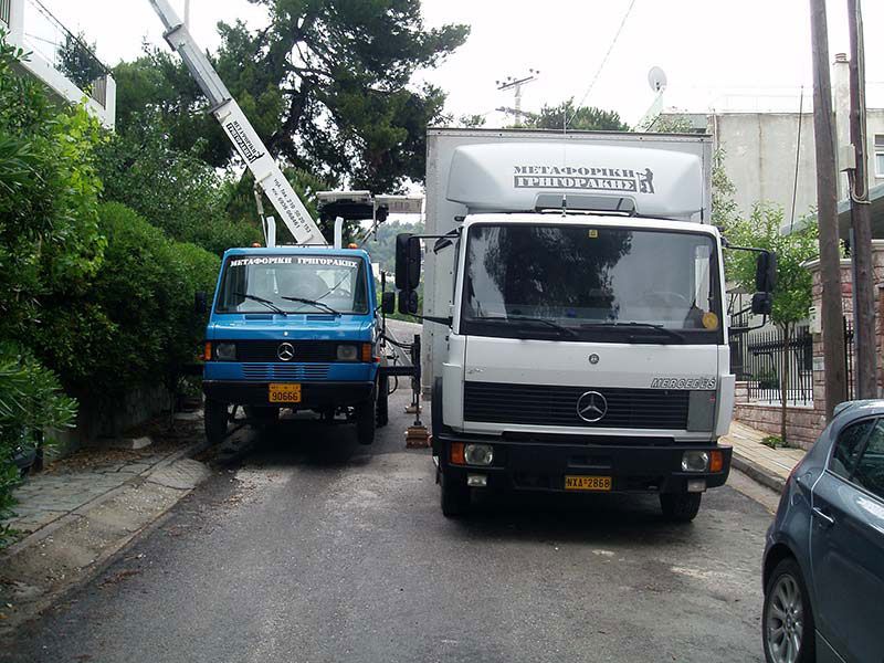 Διαθέτουμε ιδιόκτητο στόλο με φορτηγά, καθώς και ανυψωτικά μηχανήματα προκειμένου να εξασφαλίσουμε την άριστη οργάνωση και υλοποίηση κάθε είδους μεταφοράς και μετακόμισης.